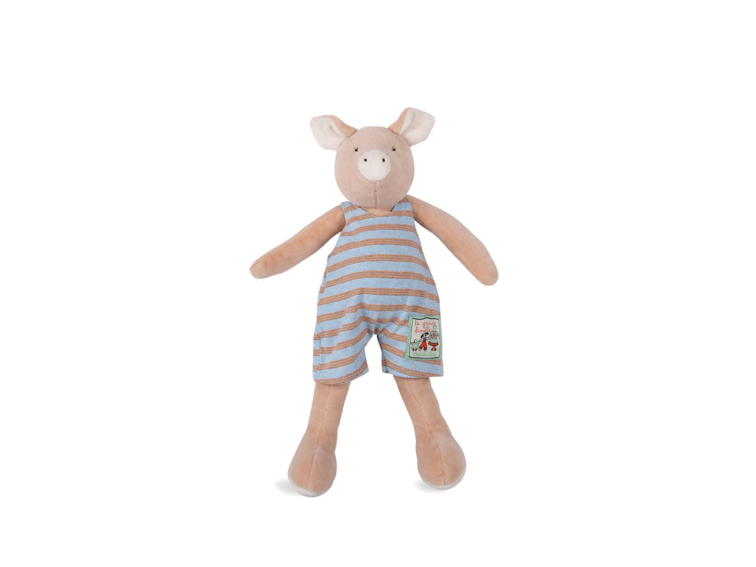Poupée en velours au doux visage brodé, facile à saisir par les petites mains. Avec ses oreilles et sa queue en tire-bouchon, Philémon le cochon est le compagnon idéal pour partager de tendres moments de complicité avec bébé.