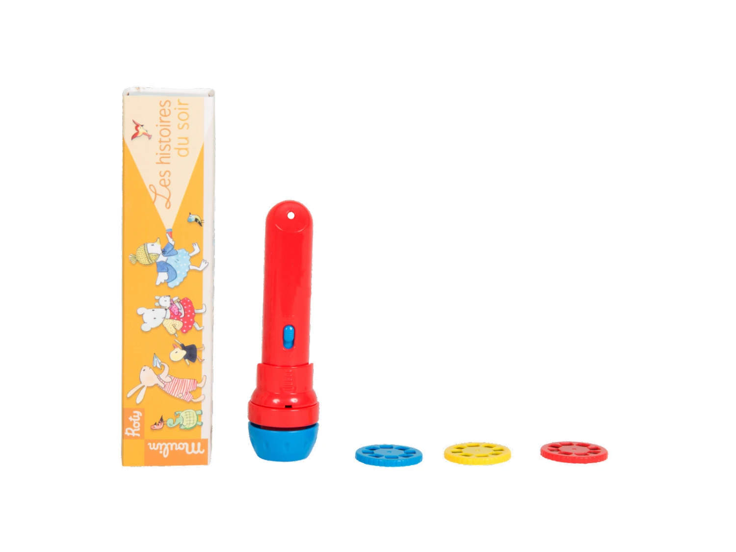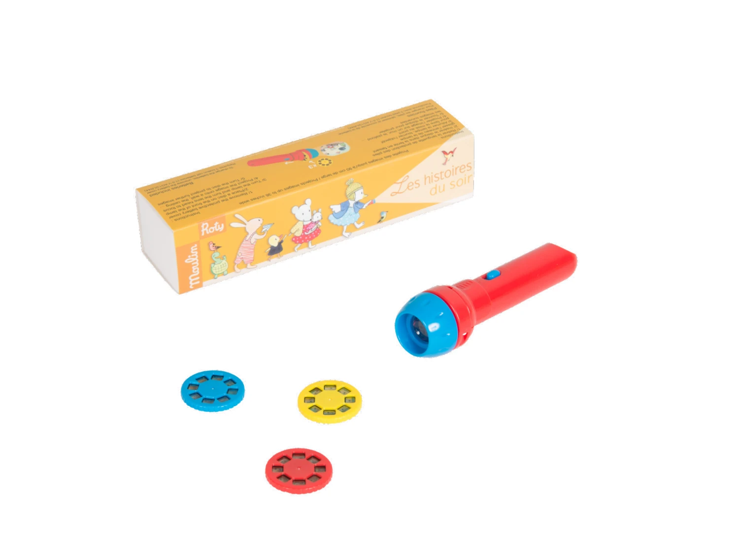 Bienvenue dans la famille ! Lampe torche de poche où chacun des 3 disques projetés sur le mur raconte une histoire amusante des personnages de la grande famille et permet de développer son imagination. Illustrations colorées des personnages de la gamme.