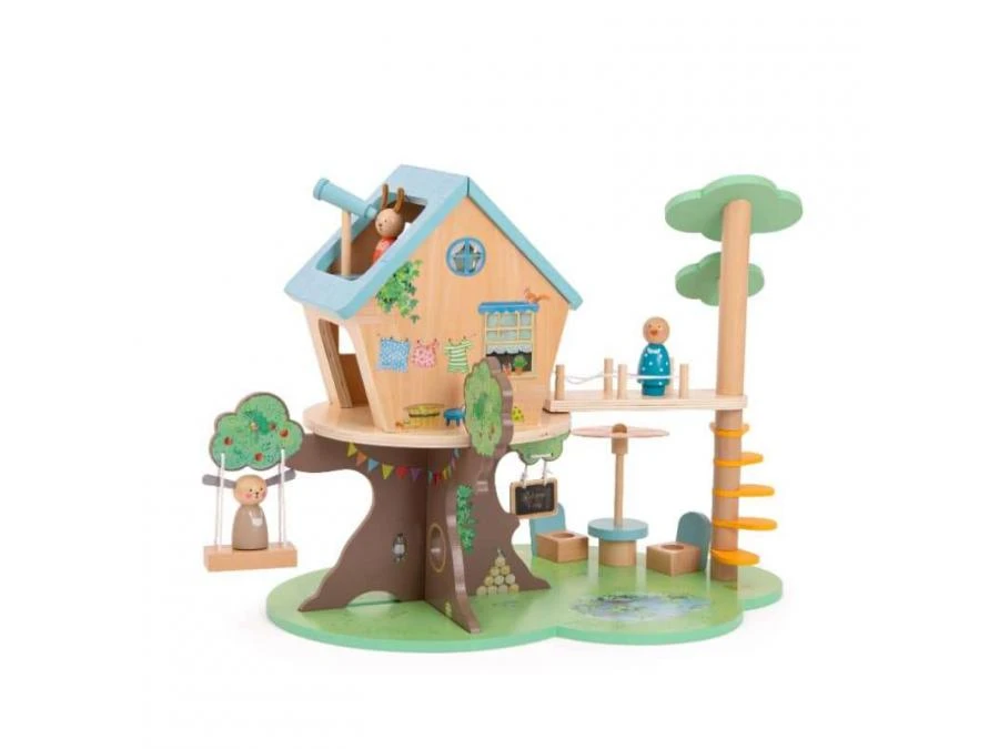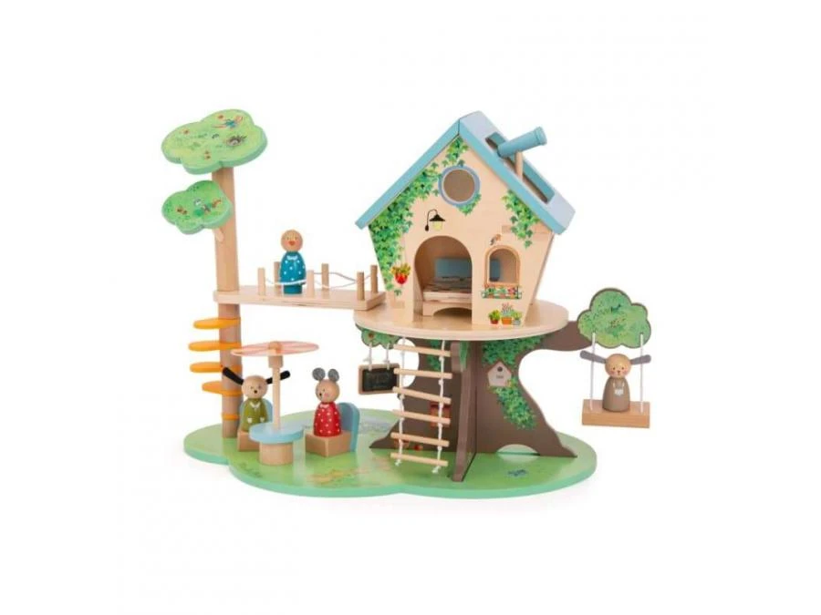 La cabane dans les arbres est l’endroit rêvé pour jouer ! On y accède grâce à l’échelle de corde ou par un pont suspendu à l’arbre voisin. Tout en bois et démontable, elle comprend même un petit salon de jardin pour se reposer à l’ombre…