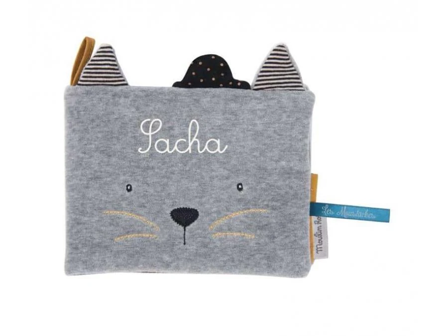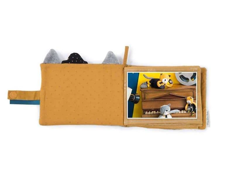 Album photo Fernand le chat en velours éponge, avec deux oreilles, des moustaches et un chapeau à pois ! Comprend 9 pages pour glisser ses photos, une attache velcro pour le fermer et un lien pour l’emmener partout. Peut être brodé au prénom de l’enfant.
