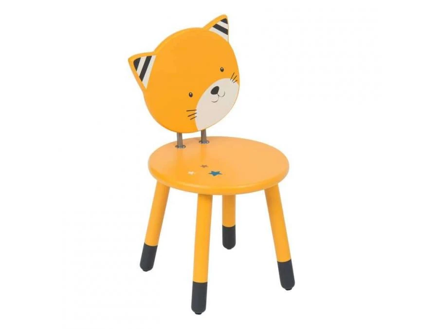 Chaise jaune en bois peinte de jolies étoiles, avec pour dossier, Lulu l’adorable chat ! Idéale pour accompagner la table Les Moustaches, elle servira aussi bien dans la chambre qu’au salon !