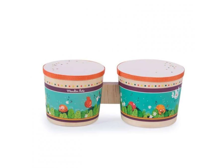 2 tambours en bois, reliés ensemble, et illustrés des oiseaux chantants de la jungle ! Tout en couleurs, ils permettent un éveil joyeux au rythme et à la musique, pour toutes les petites mains !La meilleure façon de tenir le tambour bongo est de le maintenir entre les jambes.