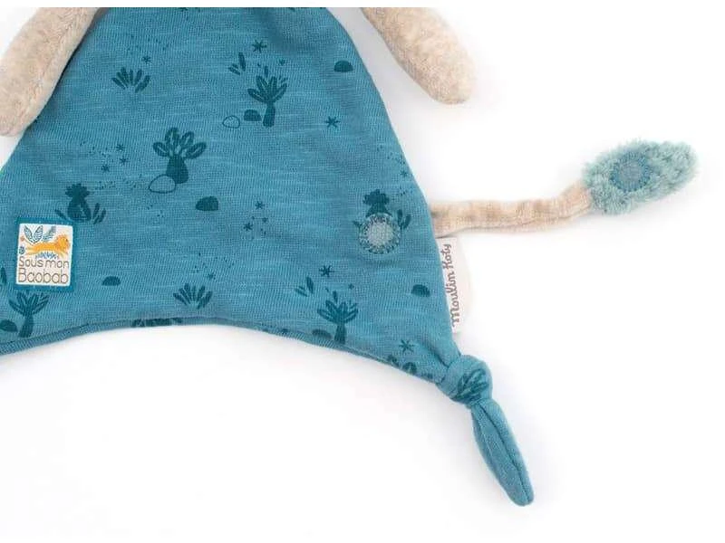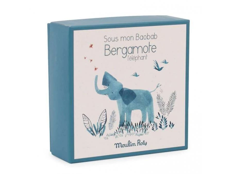 Doudou Bergamote l’éléphant et ses grandes oreilles toutes douces. Il comprend une queue à transformer en attache tétine à scratcher, et un anneau dentaire sur le côté. Le prénom de bébé pourra être brodé sur la combinaison de son nouveau compagnon.