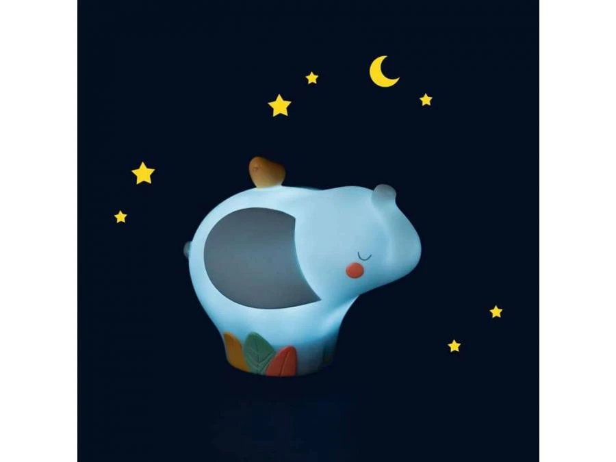 Cette veilleuse nomade Bergamote l’éléphant éclaire la chambre de sa douce lumière. Avec 15 heures d’autonomie, elle se recharge par câble USB (inclus) en seulement 3 heures, et comprend un mode timer pour s’éteindre automatiquement après 30 min.
