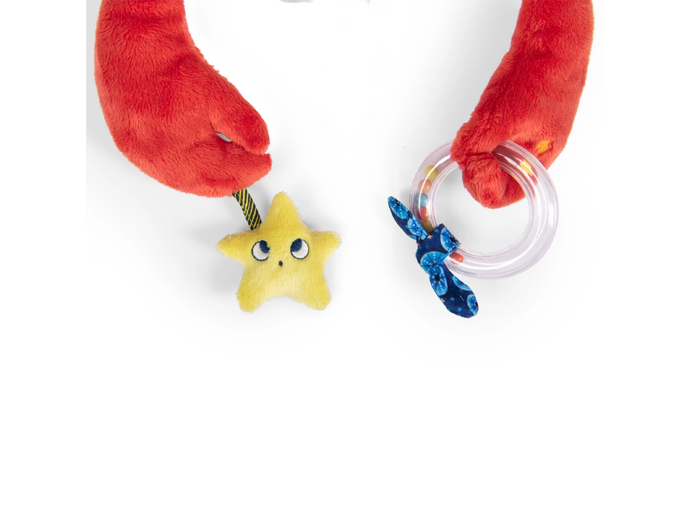 Ce grand crabe d’activités a plus d’un tour dans ses pinces. Avec ses trois tissus très doux au toucher, il accompagne les petits dans l’exploration marine grâce à plusieurs activités dont certaines sont cachées : prisme, dilling, pouët, grelots…