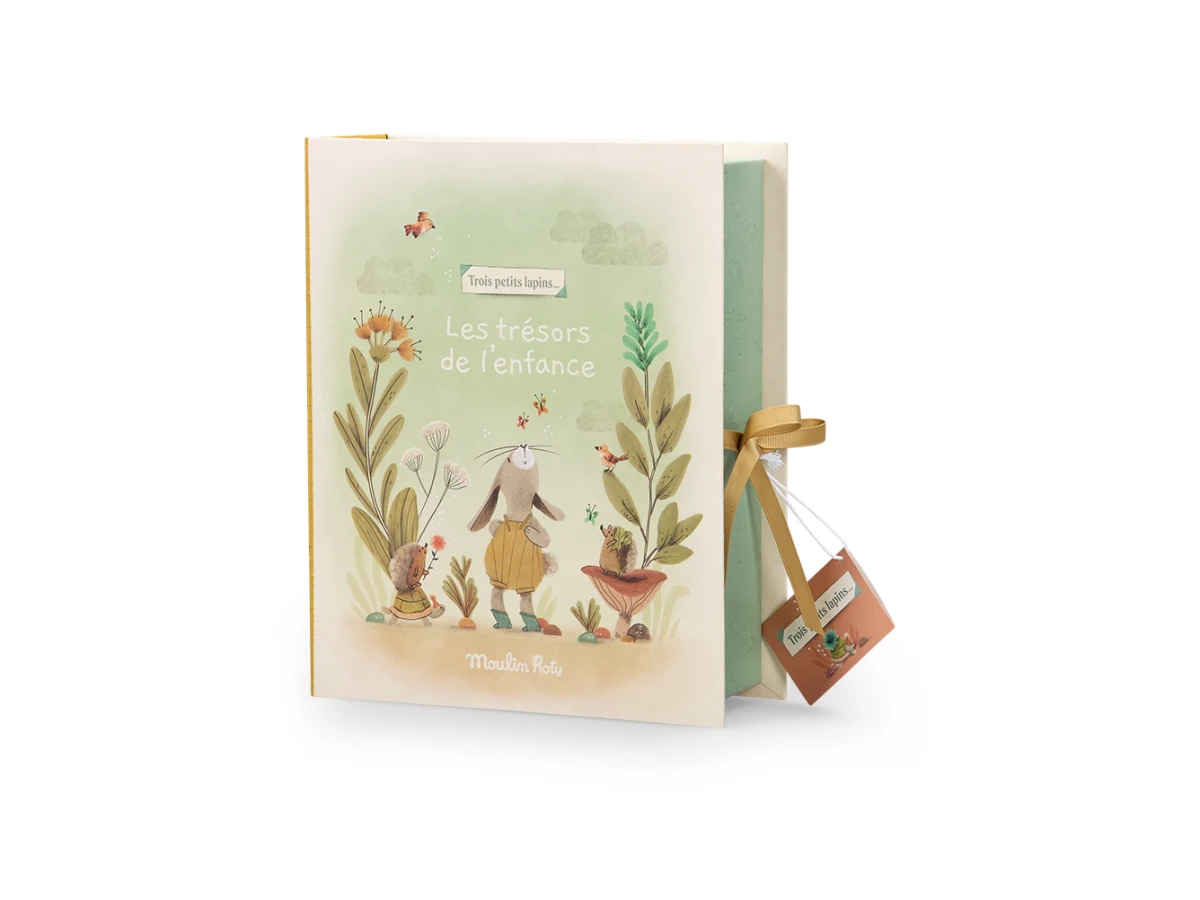 Coffret à trésors pour conserver les souvenirs de bébé dans chacun des tiroirs … Se referme avec de jolis liens et reprend les tendres illustrations des personnages de la collection Trois Petits lapins à l’intérieur comme à l’extérieur.