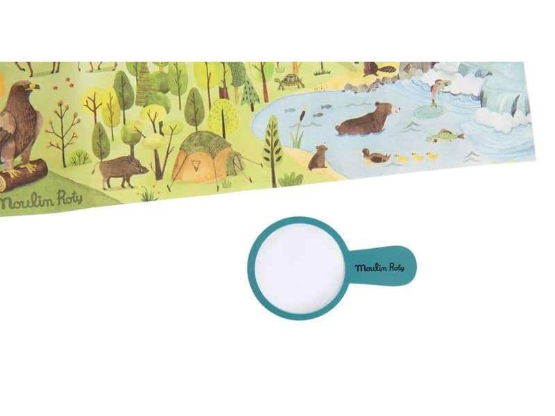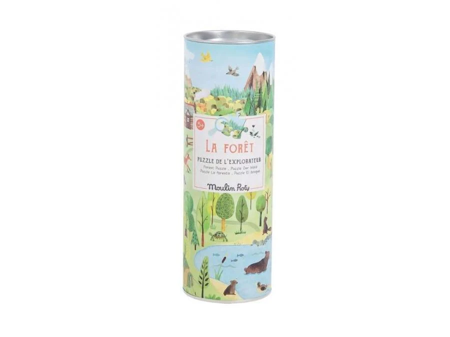 Un puzzle de 96 pièces illustrant à l’aquarelle la faune et la flore de la forêt… Le puzzle est rangé dans un joli tube illustré où l’on retrouve un poster avec un imagier au dos, et une loupe pour observer la scène de plus près !