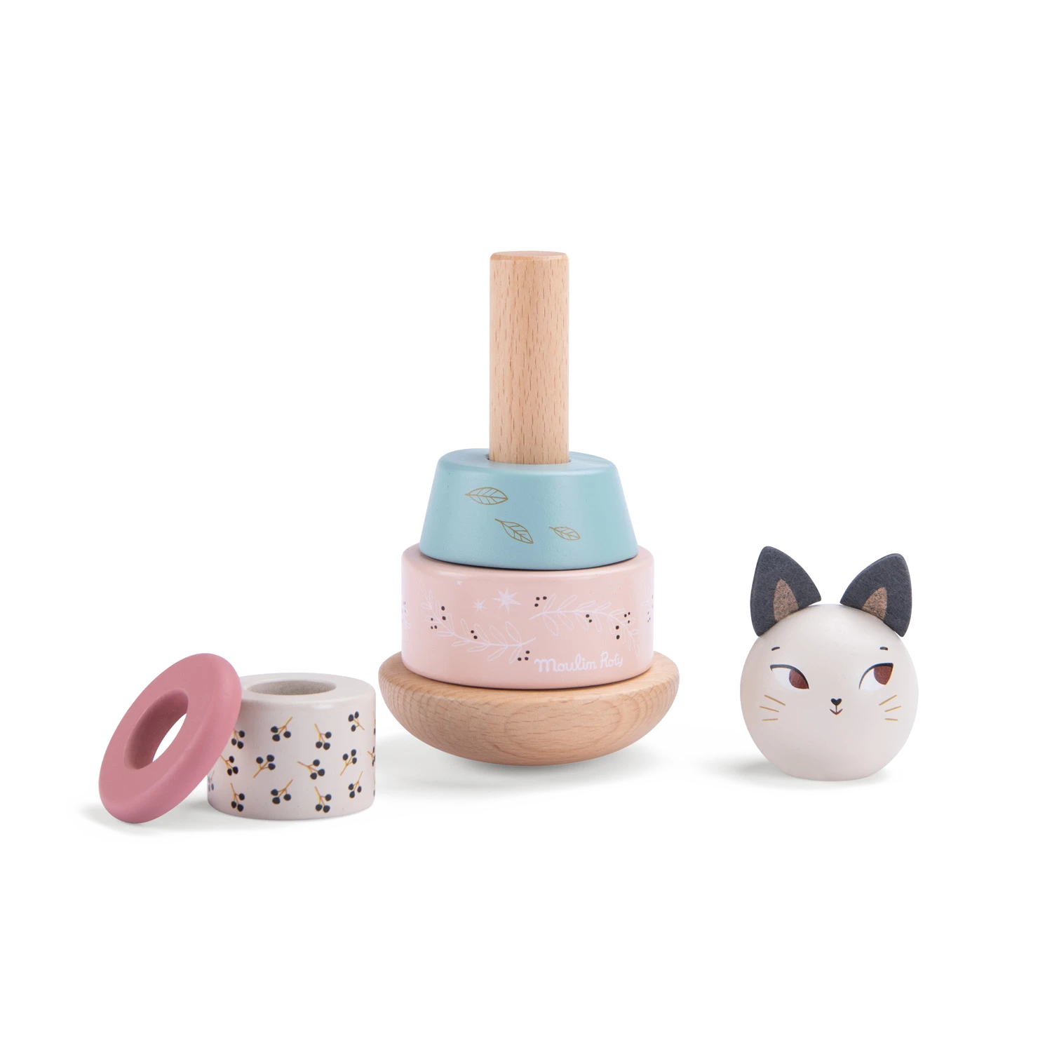 Un classique parmi les jeux en bois. BĂ©bĂ© devra empiler sur le culbuto, un Ă un les 4 anneaux aux formes et couleurs variĂ©es ainsi que la tĂŞte pour former le chat GiboulĂ©e. A monter et dĂ©monter Ă l’infini…