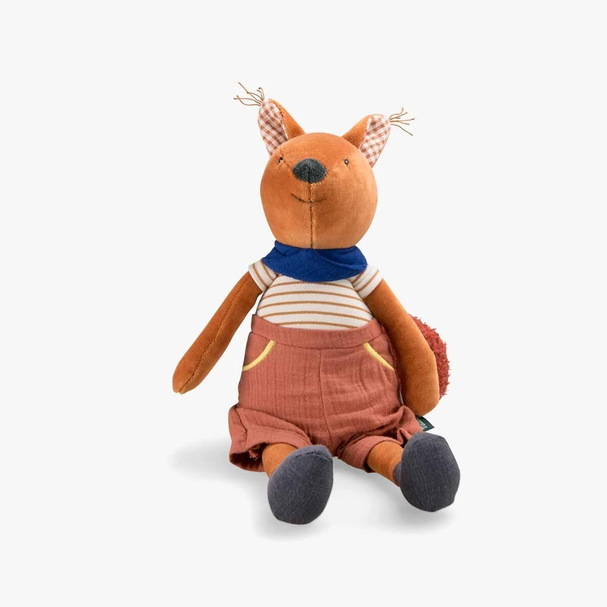 Jeu de textures et couleurs pour ce tendre compagnon écureuil, certifié OEKO-TEX®. La boîte à musique est actionnée en tirant sur la pastille. Pratique, le boitier musical est déhoussable pour faciliter le lavage.