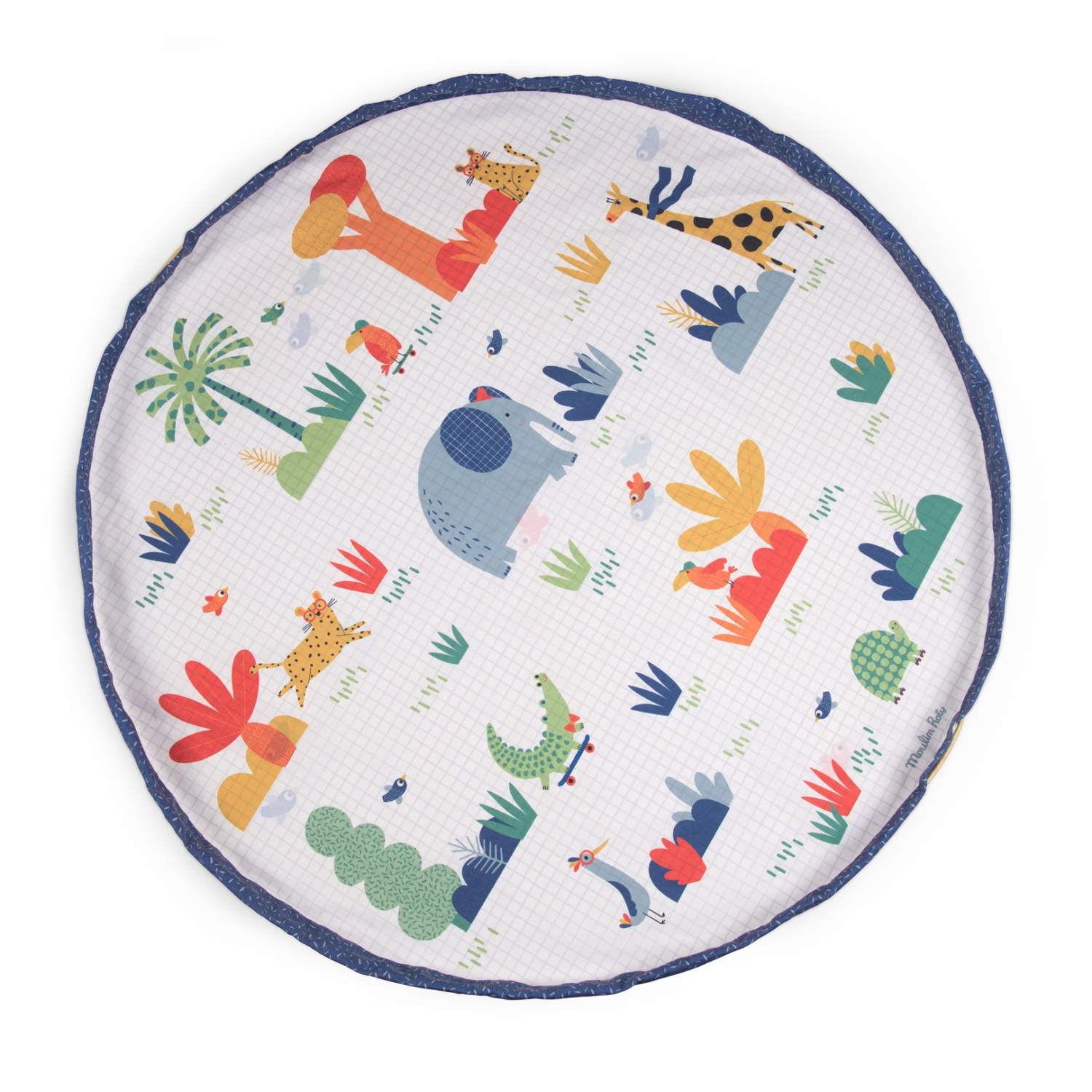Tapis de jeu en toile 100% coton, aux couleurs et motifs de la collection Les Toupitis. Pratique, il se transforme en sac de rangement à emmener partout avec soi. Il suffit de resserrer ses deux cordons grâce à sa lanière ajustable pour le transporter.
